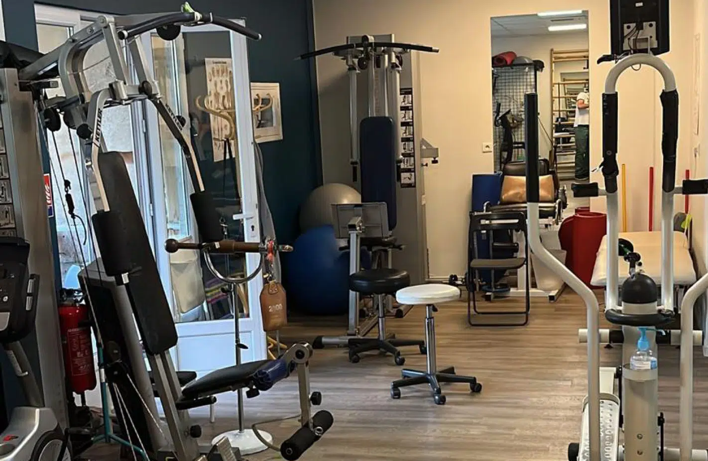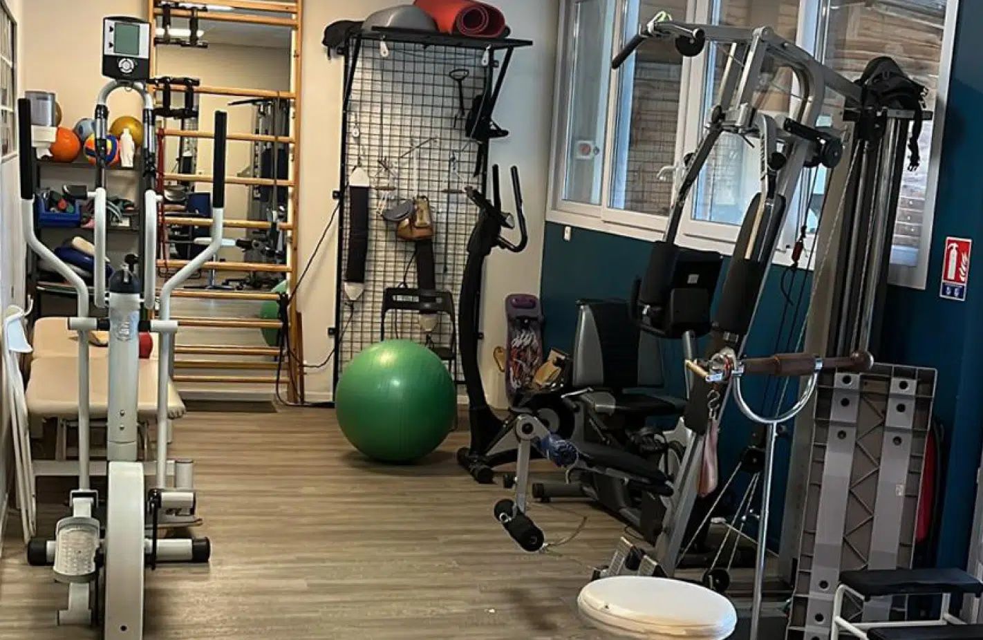 Le cabinet dispose d’un plateau technique situé au rez-de-chaussée, dédié à la rééducation active et au travail fonctionnel. Cet espace permet de réaliser des exercices de mobilité, de renforcement musculaire et de récupération dans un environnement adapté au suivi des patients. Un espace extérieur est également disponible, permettant de réaliser certains exercices de rééducation et de travail fonctionnel en extérieur lorsque cela est adapté à la prise en charge.