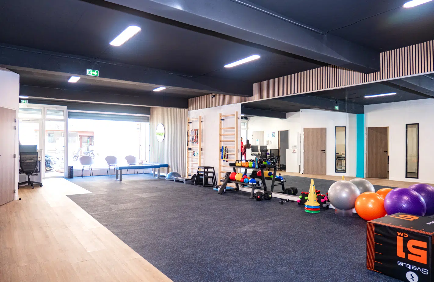 Des zones libres permettent la rééducation active, le suivi post-opératoire, le travail de la mobilité et le renforcement musculaire grâce à du matériel de dernière génération et des équipements fonctionnels adaptés à tous les profils.