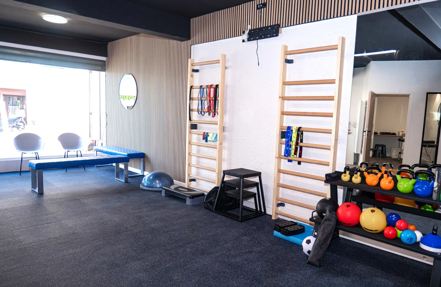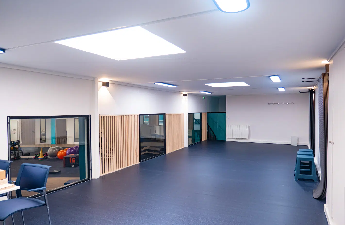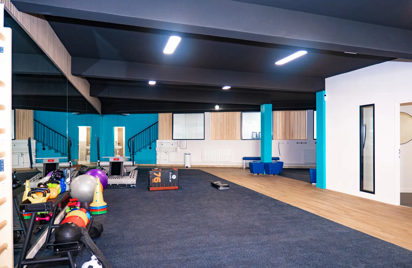 Nous mettons à votre disposition de grands plateaux techniques modernes, équipés pour la kinésithérapie du sport et la rééducation fonctionnelle. Des zones libres sont également aménagées pour le travail au sol, favorisant les exercices de mobilité, de renforcement et de réathlétisation.