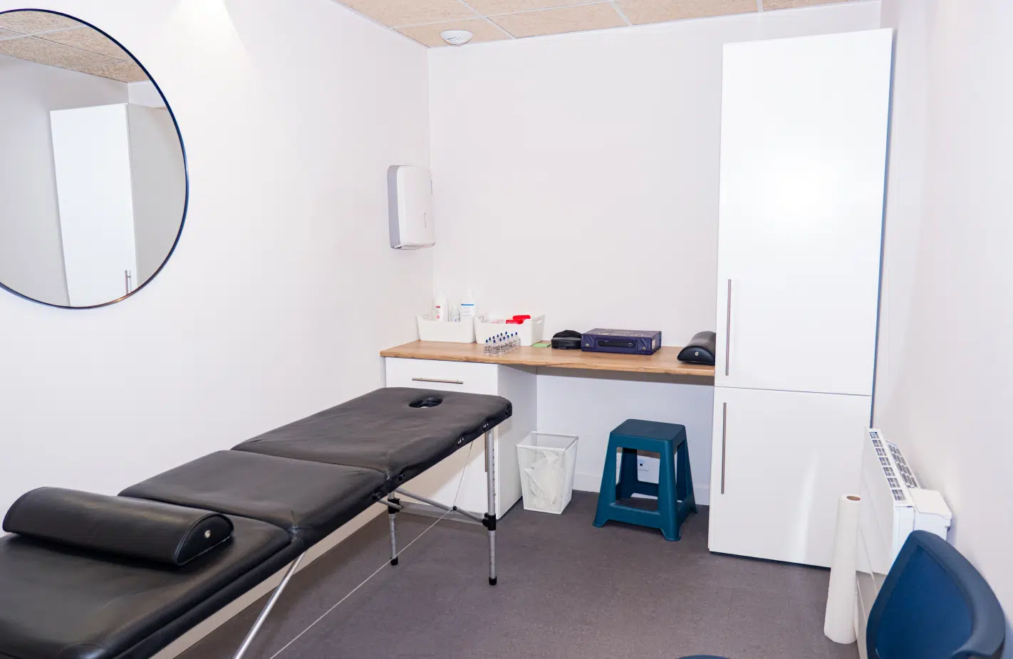 Le cabinet dispose de trois box de consultation, conçus pour garantir calme, intimité et confort. Chaque box est équipé d’une table de massage et permet la réalisation de séances individuelles dans une atmosphère propice à l’écoute et à la précision du soin.