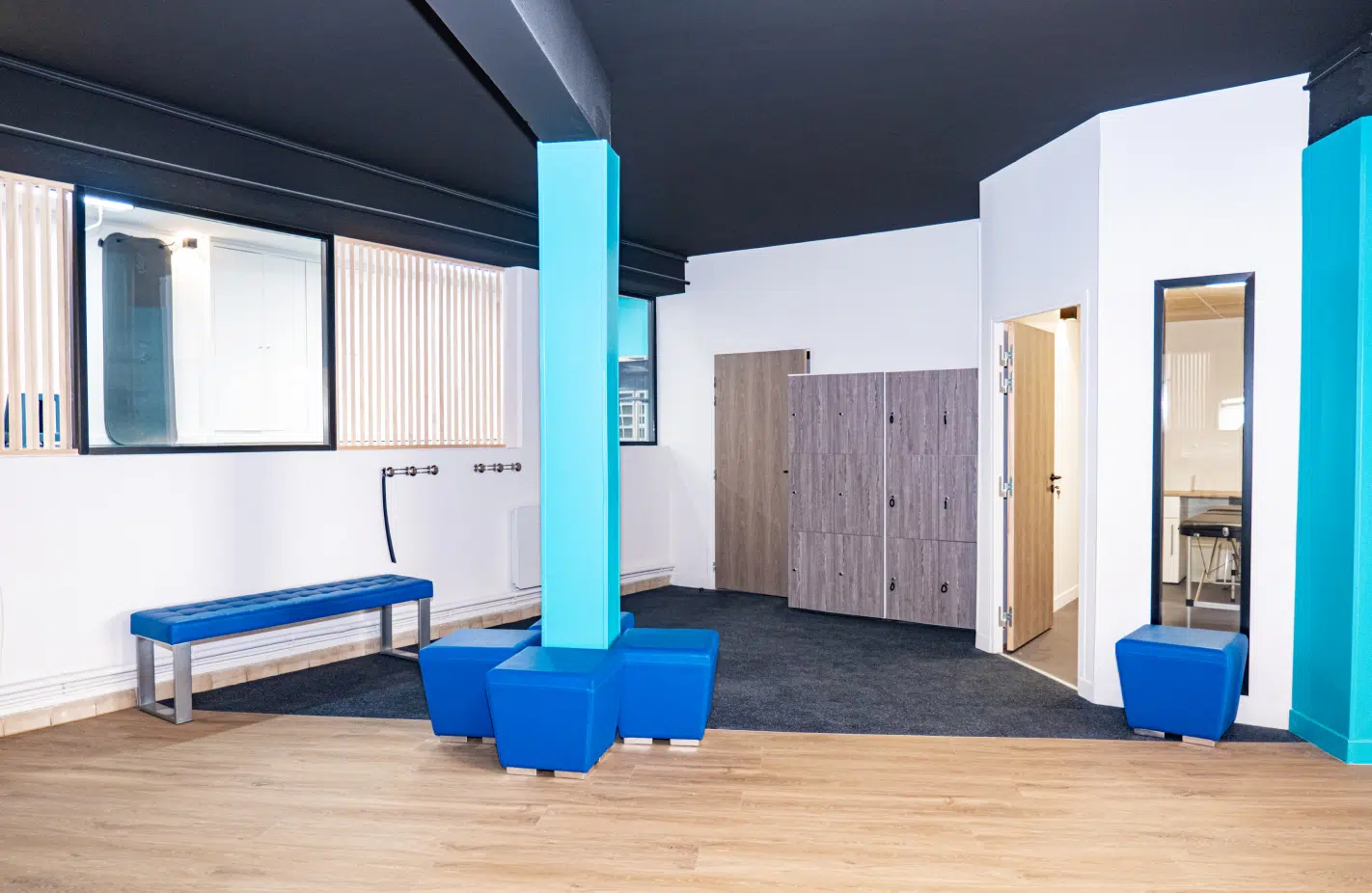 Les espaces communs ont été pensés pour offrir une circulation fluide et intuitive au sein du cabinet. Des casiers sécurisés sont mis à votre disposition pour ranger vos effets personnels pendant les séances. L’ensemble du parcours a été conçu pour favoriser le bien-être et rendre votre expérience au cabinet simple et agréable.