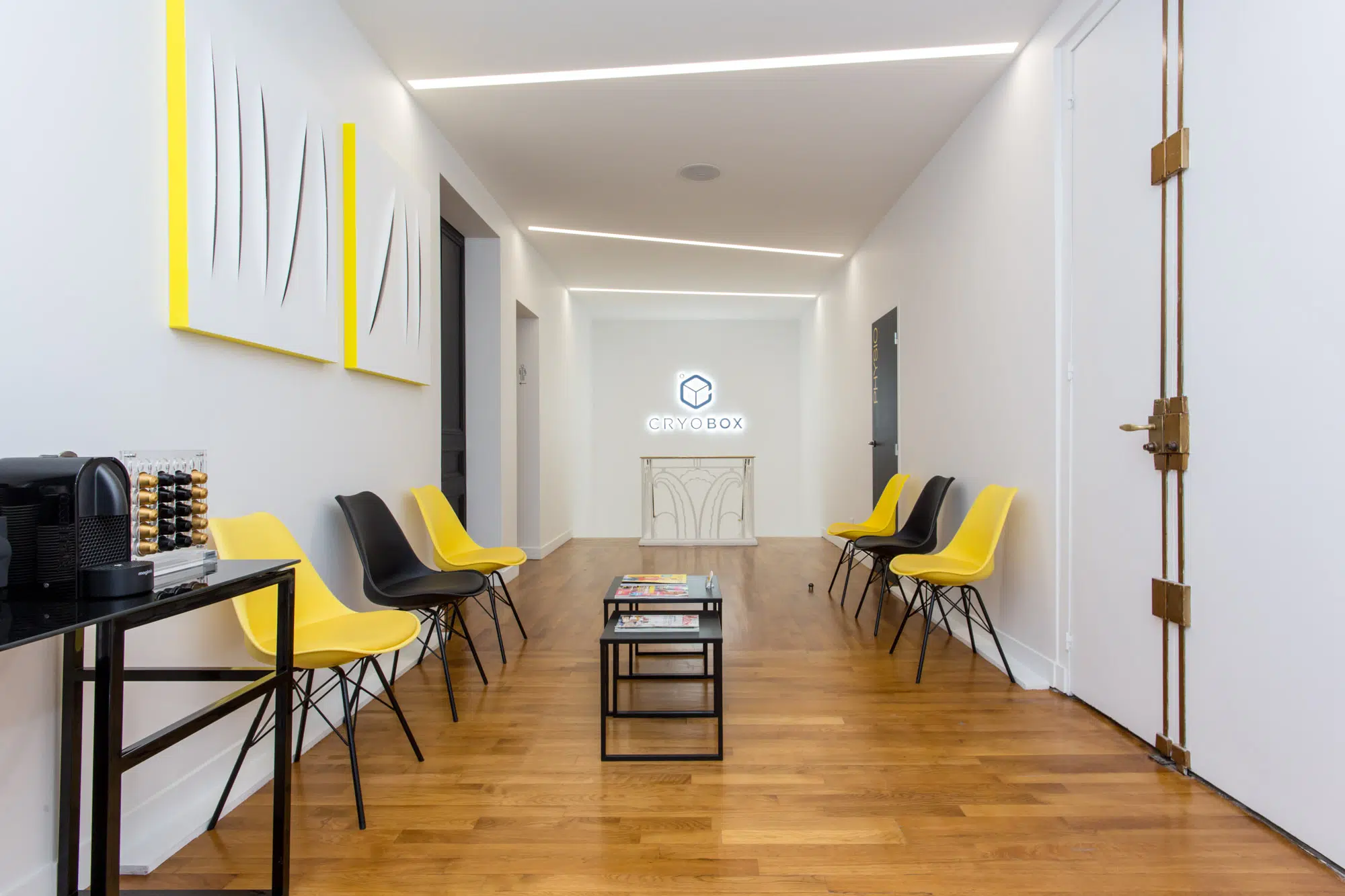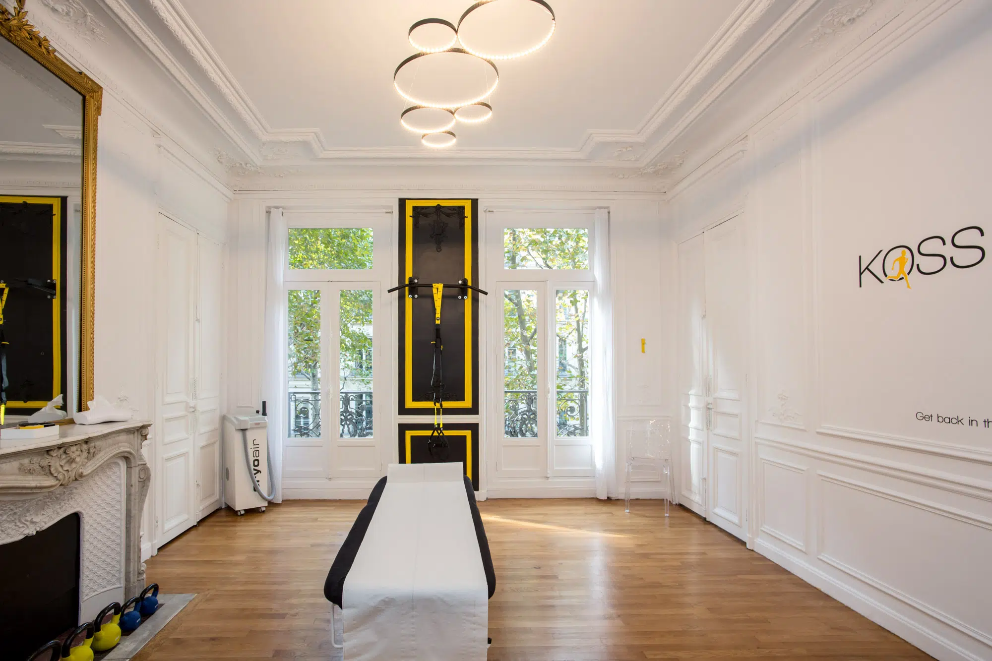 Les espaces communs du centre KOSS Paris sont conçus pour allier confort et efficacité. Les salles sont équipées de matériel de pointe et agencées pour favoriser la concentration et le bien-être, dans une ambiance à la fois dynamique et apaisante.